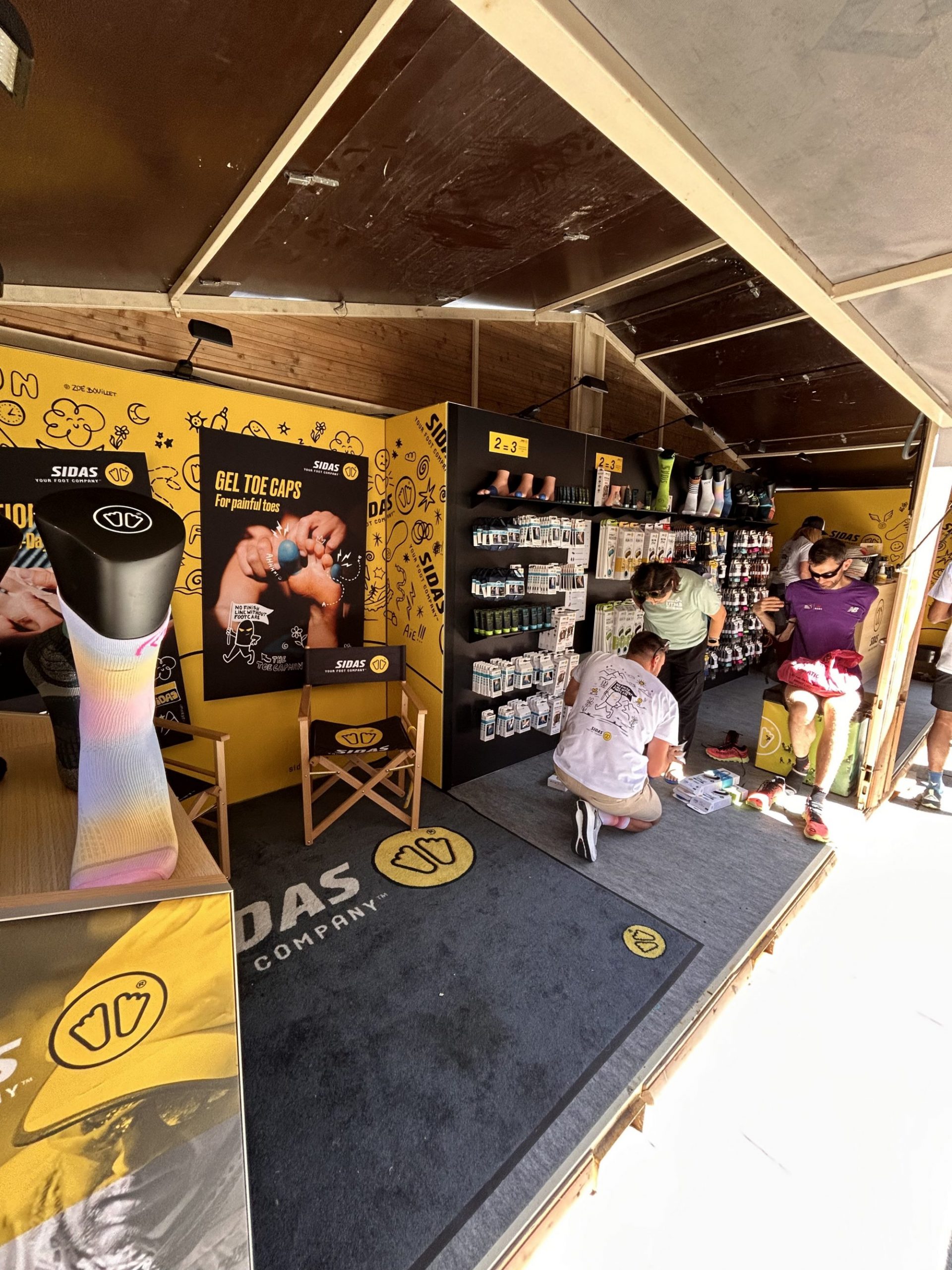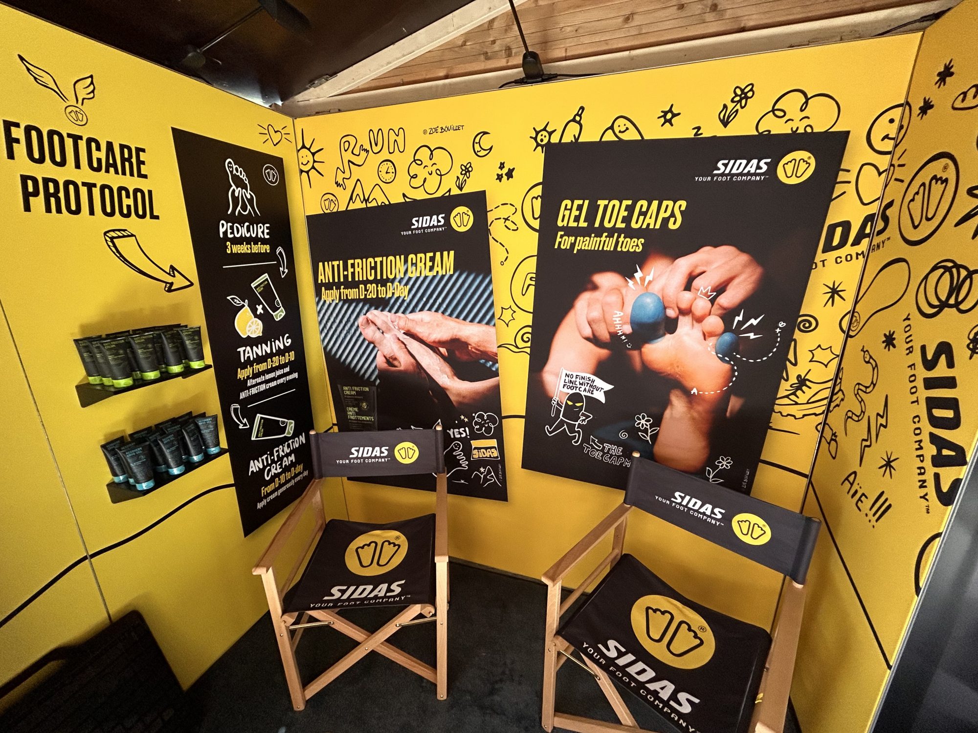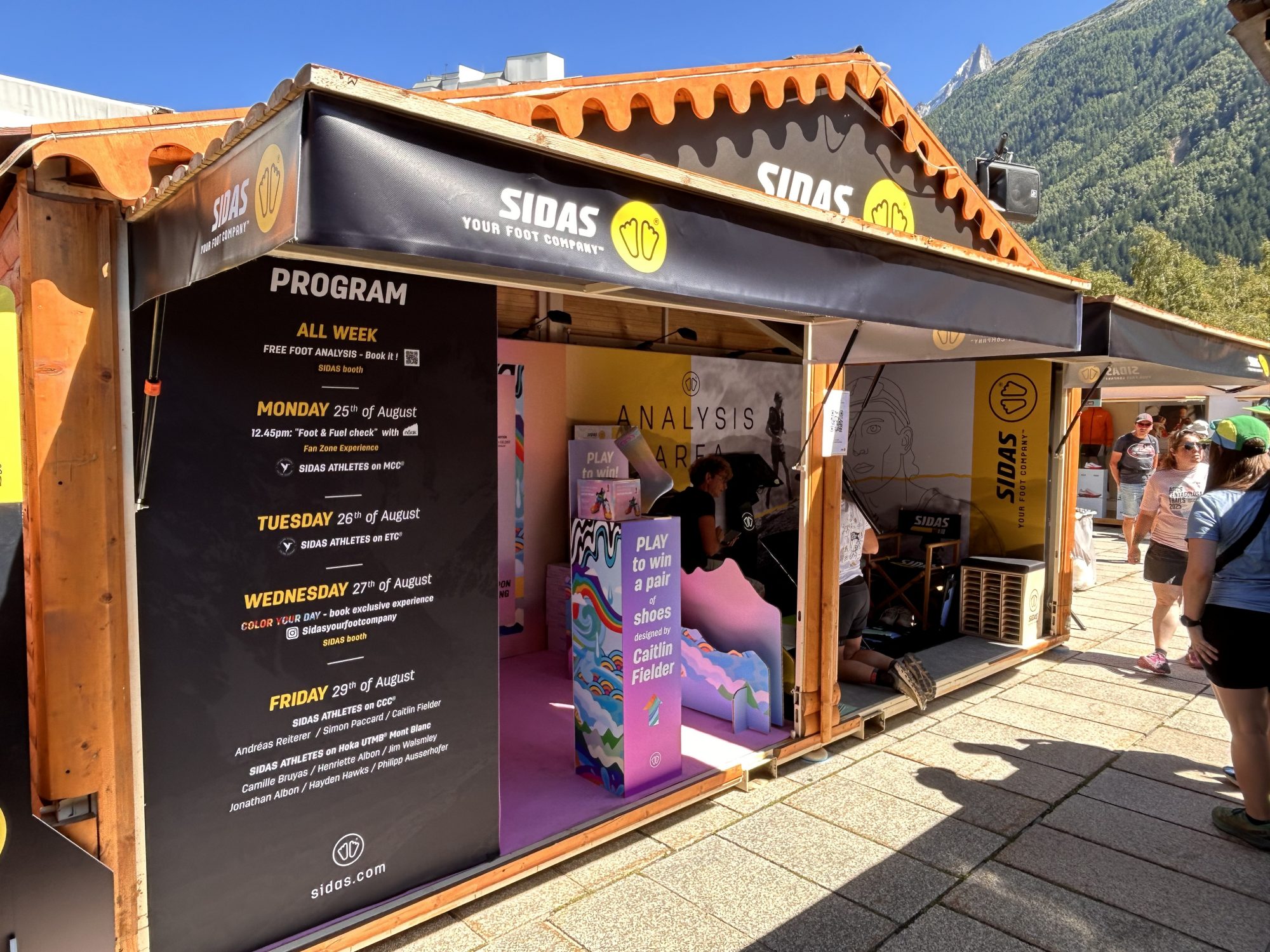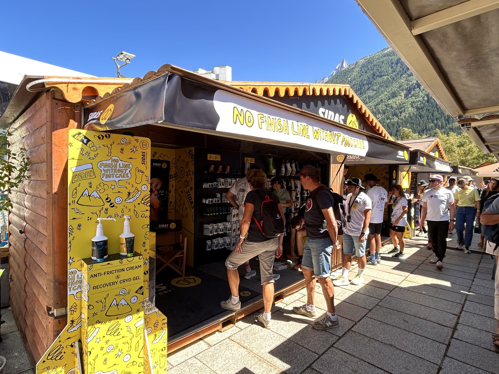 À l’occasion de l’Ultra Trail du Mont-Blanc, événement incontournable du trail running mondial, SIDAS, spécialiste du footcare et des chaussettes techniques, a décidé d’activer sa présence de manière forte et visible, avec un dispositif double, signé Trade Or Nothing. En tant que fournisseur officiel de soins du pied de l'événement, la marque se devait de créer un espace à la hauteur de son statut, directement au contact des participants, sur la place du Mont-Blanc ! L'idée de ces deux chalets était de scénariser un parcours client reprenant les expertises de Sidas permettant aux coureurs de franchir sereinement la finish line : analyse du pied, choix de la chaussure, préparation des pieds avec des soins anti-friction, choix de la chaussette et de la semelle, sélection d'accessoires de soins (capuchon d'orteils, tube d'orteils, kit foot care ...), passage de la finish line, choix des soins de récupération : crème, chaussettes ...